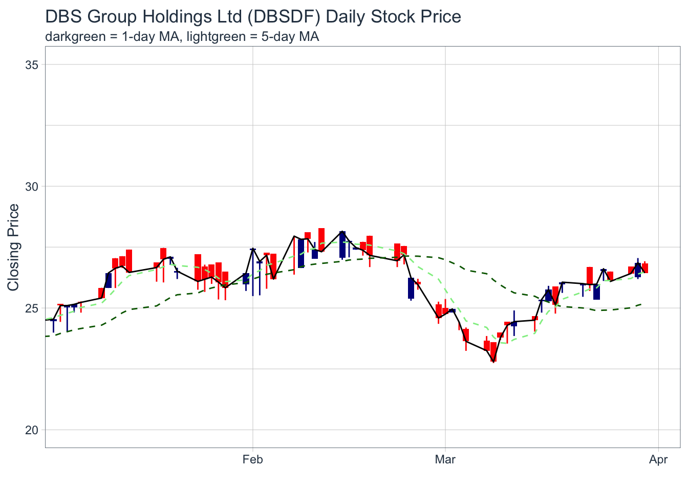 labs(title = "DBS Group Holdings Ltd (DBSDF) Daily Stock Price",