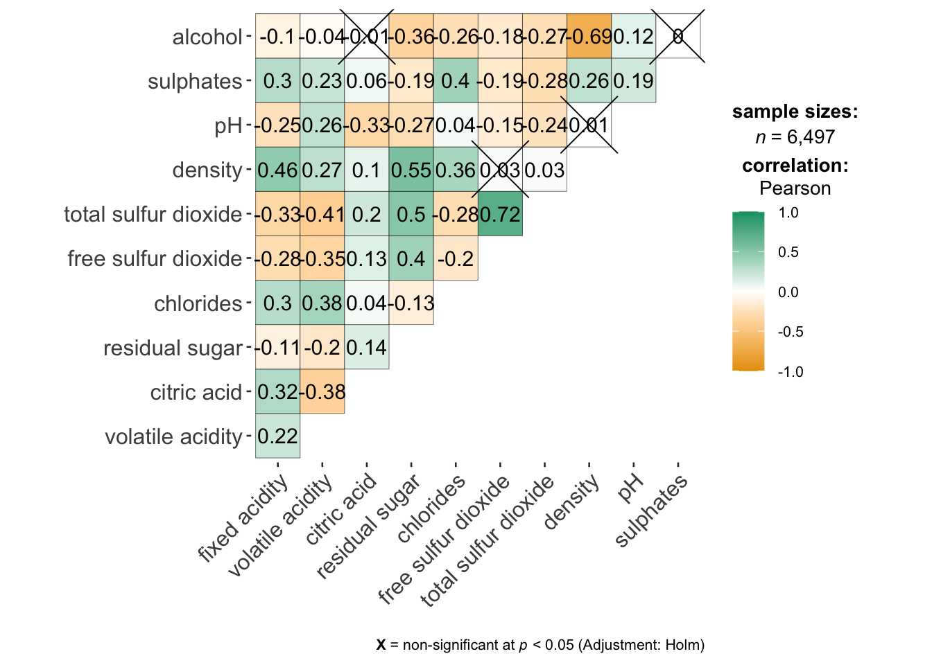 wine.cor <- cor(wine[, 1:11])
