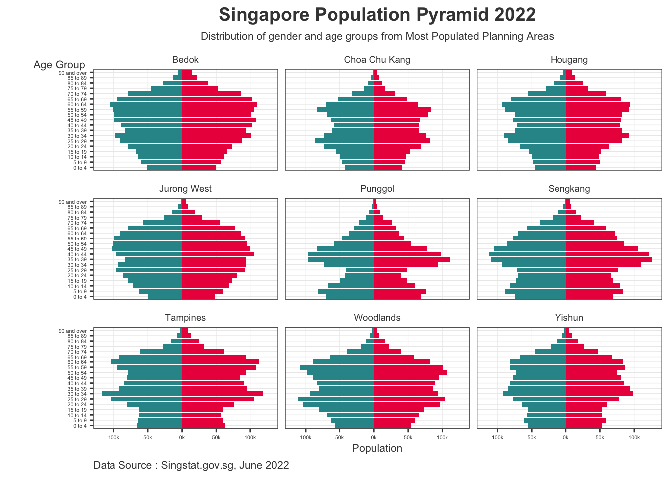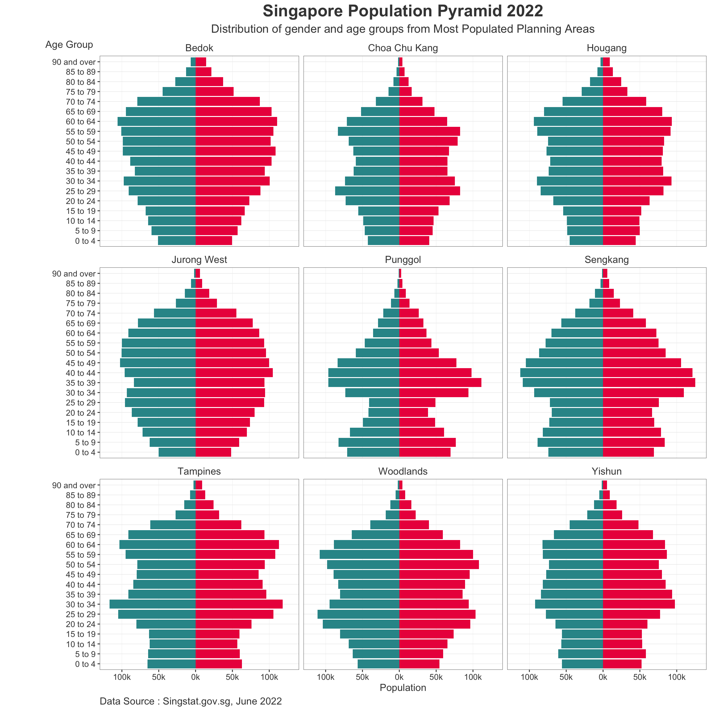 The visualization is created using the Singapore Residents by Planning Area / Sub-zone, Age Group, Sex and Type of Dwelling, June 2022 (Singstat).