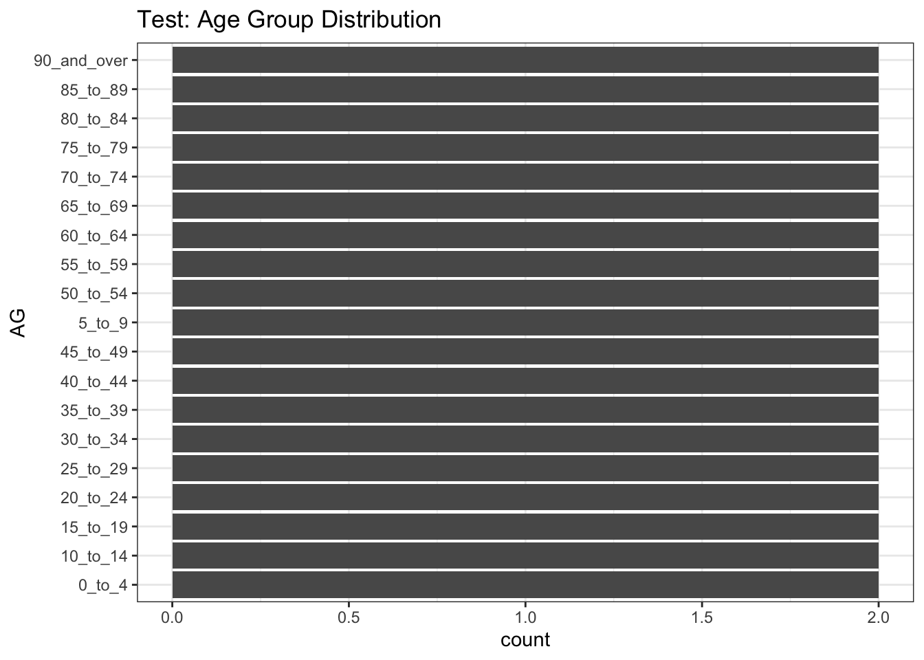 ggtitle("Test: Age Group Distribution")